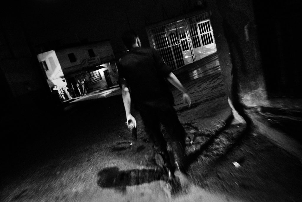Metropolitan Police on a night patrool chasing criminals in Catia, one of most dangerous barrios in Caracas.